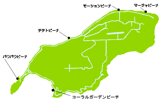 ●テテトビーチ ロタ島で最も美しいテテト・ビーチは、白砂のビーチとヤシの木が並ぶ海岸が印象的です。 また、絶好のシュノーケリングポイントとしても有名で、様々な熱帯魚を見ることができます。 ●パウパウビーチ ローカルがよく訪れる遠浅のビーチです。テテトビーチに比べると小さく、サンセットを見に来るには良いポイントです。 ●コーラルガーデンビーチ ガガニフルーツファームから環境保護区域であるコーラルガーデンビーチへ歩いて行くことが出来ます。 恵まれたサンゴ礁ではたくさんの海中生物が観察できるのでダイビングやシュノーケルスポットとして有名です。 観光客が入れるのは上記3つのビーチで、他のビーチへ入るには(たぶん)許可が必要です。 |