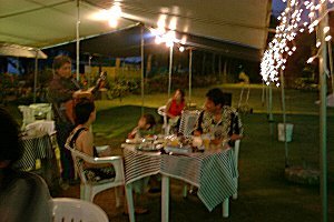 食事を楽しみながら、フラダンス(3人)やファイヤーダンス(一人)・ギター演出(一人)や女性ボーカル(一人)(他演奏4人)による歌を披露してくれます。