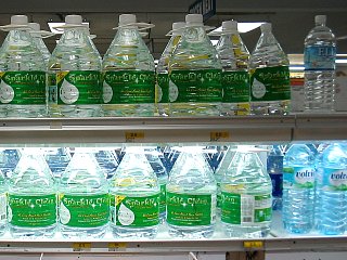 | 店内にはセキリュティー関係者が巡回しています。間違っても商品をお金を支払わずに持ち出さないこと!、即 警察に捕まり刑務所行きですよ。 | 飲料水などは大量に販売されています。サイパンの水道は塩分や石灰分が強く、飲料として使われることは稀です。好みに合わせて購入してください。 |