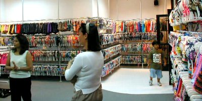 店内には最新の水着を始め、シャツやサンダルなどがところせましと