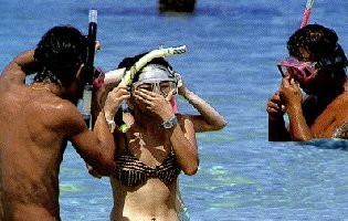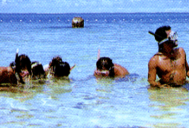 カラフルな魚達と友達になるには安いソーセージが一番!!