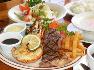 お店の造りはアメリカ開拓時代のウエスタンをイメージしたステーキハウスです。 最高級のアンガスビーフを炭火でじっくり焼いたステーキはまさに「Best Steak on The Island!」。 大人気ハンバーグステーキはMUST TRY!ディナータイムには待ち時間もできる盛況ぶり。 豪快なアメリカンスタイルをお楽しみ下さい。 |
