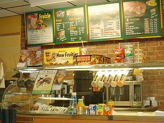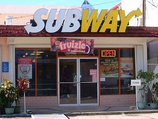 SUBWAYの名物はなんと行っても目の前で(ホットドック風)サンドイッチを作ってくれる事でしょうか、ローストビーフ、ターキーハムなどをトッピングしたサンドイッチはこれ一個でお腹は充分満たされることでしょう。 また、ドリンク類は注文すると空コップを渡してくれます、ドリンクは自分で好きなだけ飲んでください。 もちろん、お替りも自由ですよ。 お好みのトッピング又は○○抜き、○○のみ、なんていうのにも対応出来るようですよ。 DADYさんから頂いた、最新情報です。 営業時間は店によって違うので注意しましょう ガラパン店は、移動しました。 新店舗は ガラパンのメインストリート沿いになります。(木曜日の屋台が並ぶ通りです) 営業時間:AM7:00〜PM11:00 TEL:233-1388 |