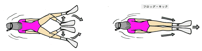 この泳ぎ方は水底をゆっくり泳ぐ時に大変便利です
