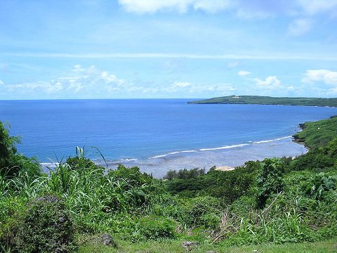 サンビセンテの高台から見下ろしたラウラウ湾です。湾の向こうに見えるのはダンダン岬です。